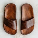 Rustic Raw-Edge Leather Slides